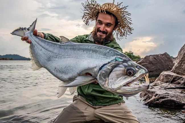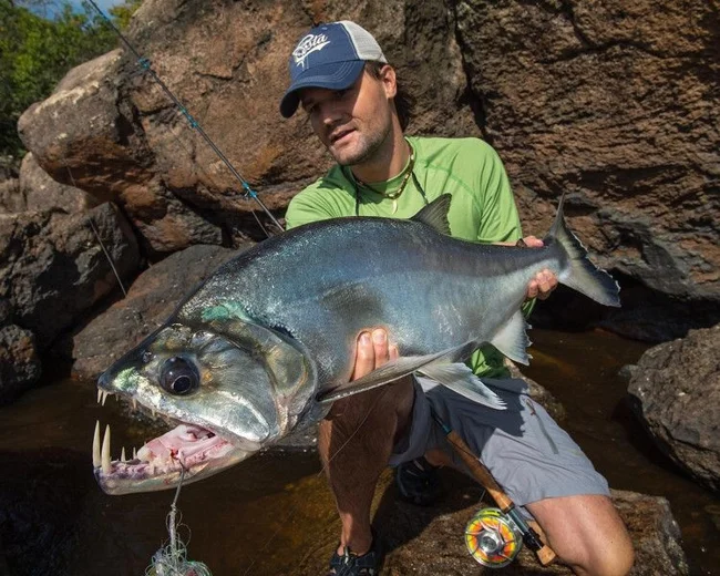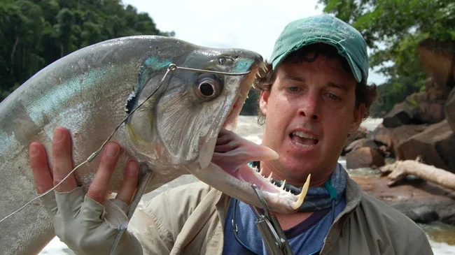 A meter-long fish with 15-centimeter teeth... Why not take a selfie with it right in the water?!