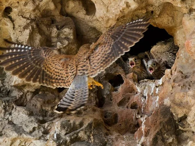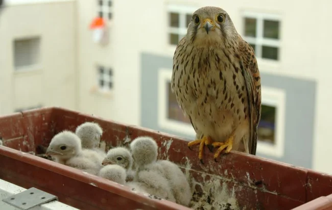 Many birds of prey do not bother with nests. They arrange a kindergarten right on the rocks and in crevices. Human high-rise buildings are ideal for this. Therefore, the dynamics of "settling" with people, for example, small falcons has been observed for at least about 70 years.