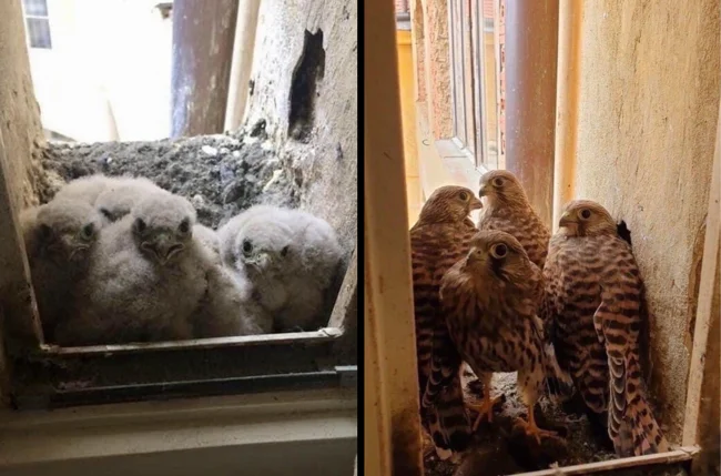 For example, peregrine falcons happily settle in high-rise buildings. The most famous couple arranged a nest on the 30th floor of Moscow State University. The couple has been hatching chicks since 2017. But in the flowerbed outside the window, there is a high probability that a family of common kestrels can “grow up”. Among birds of prey, this species is the least afraid of humans.