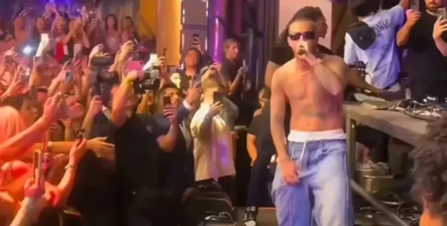 Videos from social media show a shirtless, tattooed man wearing sunglasses performing hits on stage in front of a large audience. Spectators filmed everything on their phones, convinced that they were watching the real Bieber.