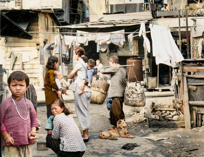 A settlement of illegal tenants in Kowloon. Hong Kong, 1963.