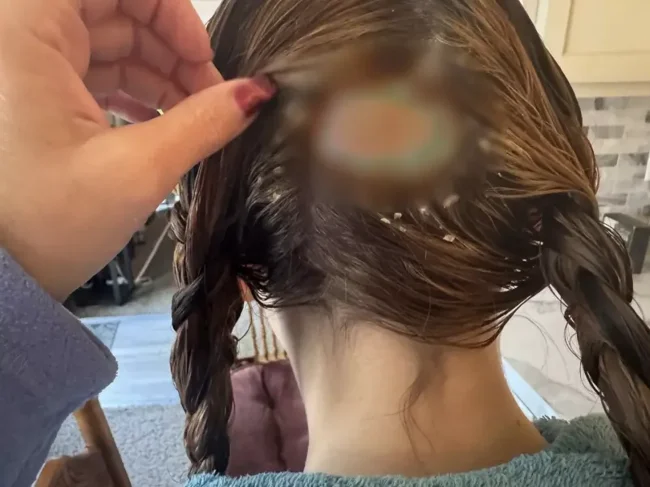 Already in the hospital, it turned out that Kyrie had first-degree chemical burns. A few days later, doctors removed the dead skin, leaving the girl with a bald spot where hair will most likely not grow back.