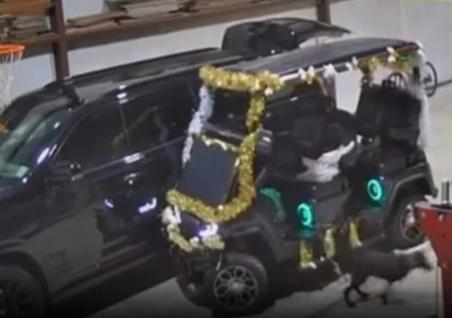 A dog "stole" a golf cart and crashed into a car (2 photos + 1 video)