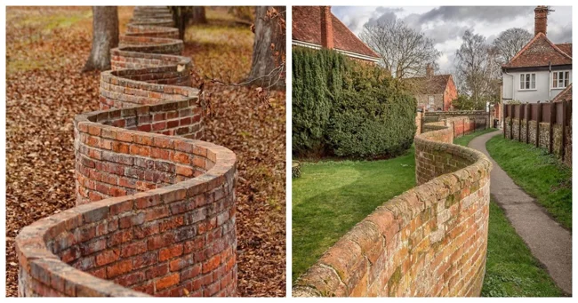 These unique walls appeared in the 17th century, when Dutch engineers were draining the marshes in the region. Brick architecture was fashionable at the time, and the wavy walls were ideal for the damp and unstable soil of East Anglia. Some of them reach a height of 50 bricks and are decorated with decorative patterns.