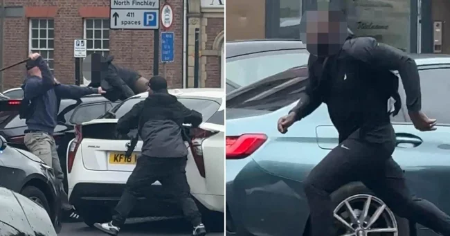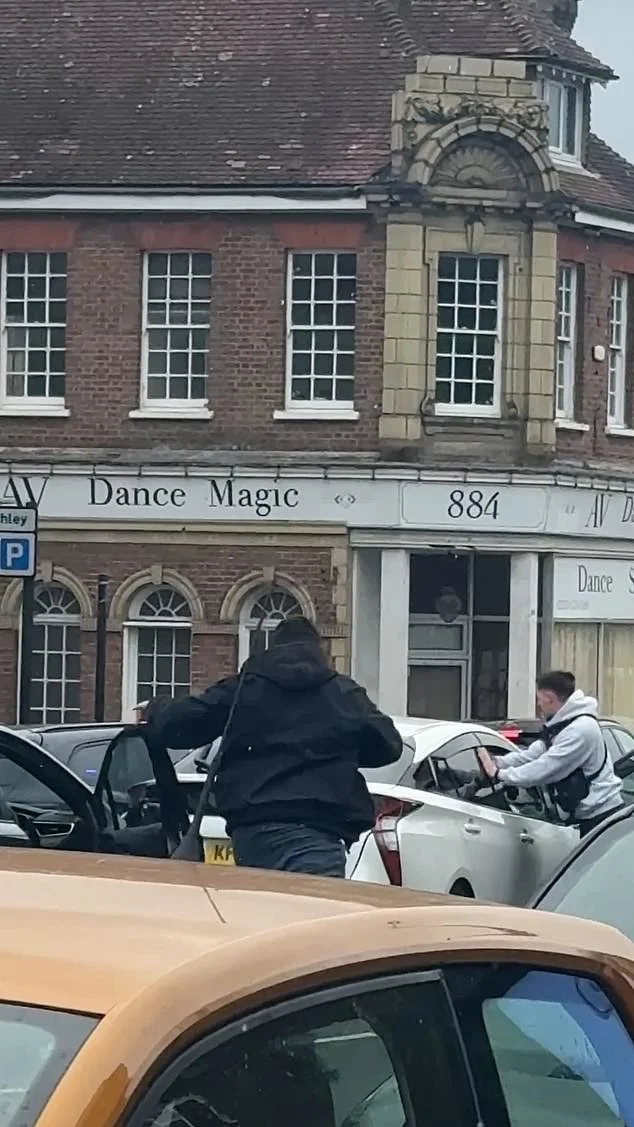 Eyewitnesses have shared footage of a driver being arrested in a London suburb. Plainclothes officers stop a car and start smashing the windows, but the man runs away.