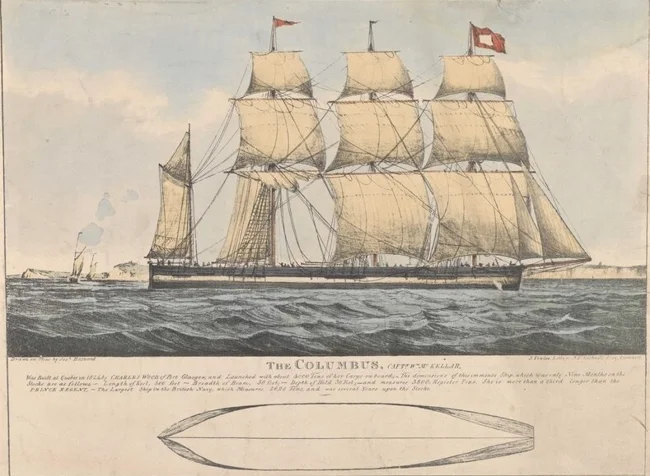 The Columbus entered the Port of London with great fanfare. She carried 6,300 tons of timber as cargo, plus another 3,690 tons of the ship itself. In a single voyage, the Columbus delivered over 10,000 tons of timber across the Atlantic, worth £50,000. The venture was a resounding commercial success. But at that point, greed overrode the original plan to dismantle the ship, and the Columbus's owners sent her off to pick up more cargo. Three weeks into the return voyage, the ship was caught in a severe storm, broke apart, and sank.