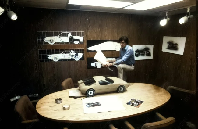 American automobile designer and engineer John DeLorean works on the design of a new car. Detroit, Michigan, 1974.