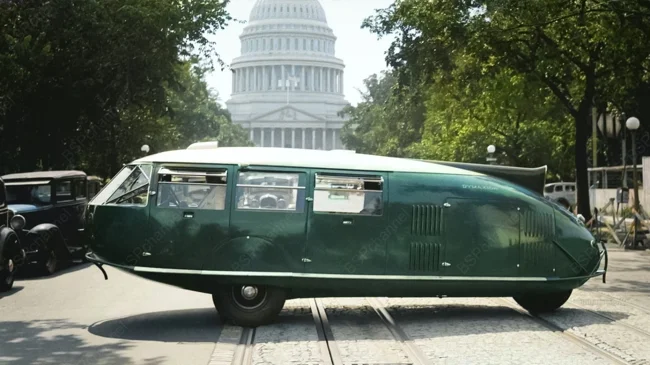 This car broke all stereotypes with its unique layout: two driven wheels at the front combined with one steered wheel at the rear, and a rear-mounted engine, making it a rare example of a rear-engine, front-wheel-drive car. Its streamlined, teardrop-shaped body demonstrated outstanding aerodynamic efficiency. At a colossal 6.1 meters in length for its time (twice the length of a standard car), the car was powered by a Ford engine producing 86 hp. Its creator, Fuller, claimed a fantastic top speed of 190 km/h (114 mph), but only 140 km/h (87 mph) was officially documented.