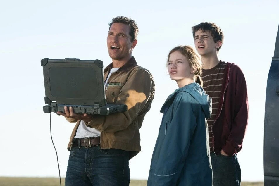 The future here isn't high-tech, it's survival. Even Christopher Nolan couldn't come up with a more compelling premise. Earth is becoming unsuitable for agriculture, and dust storms and famine are rampant. Space is humanity's only chance. Former NASA pilot Cooper takes the helm of a ship to find a new planet. And the next thing you know: he'll be memorably crying, staring at the screen, and knocking on the past from the other side of the bookshelf.