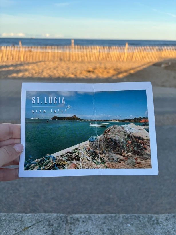 The postcard depicted the small town of Gros Islet on the northern tip of St. Lucia.
