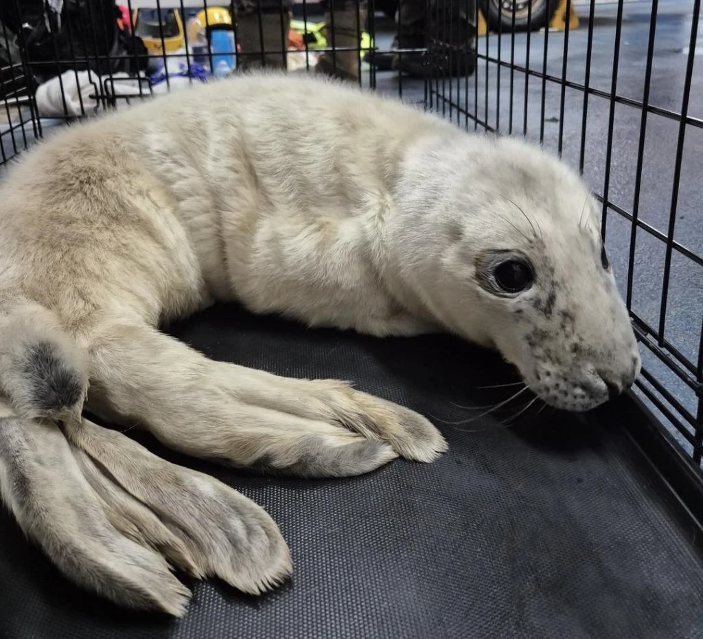 A newborn seal was separated from its mother during a storm. It was found on the rocks near the RNLI lifeguard station in Porthcawl, Wales. The pup was starving and had wounds on its flippers and chin.