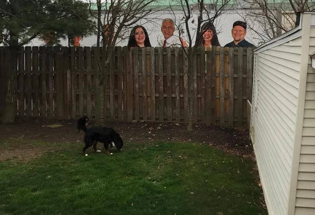 12. Strange neighbors came to gawk at A dog or just a delivery van outside the fence?