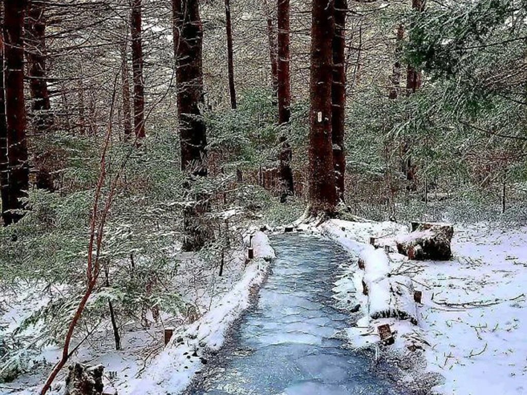 9. A frozen path or a forest river?
