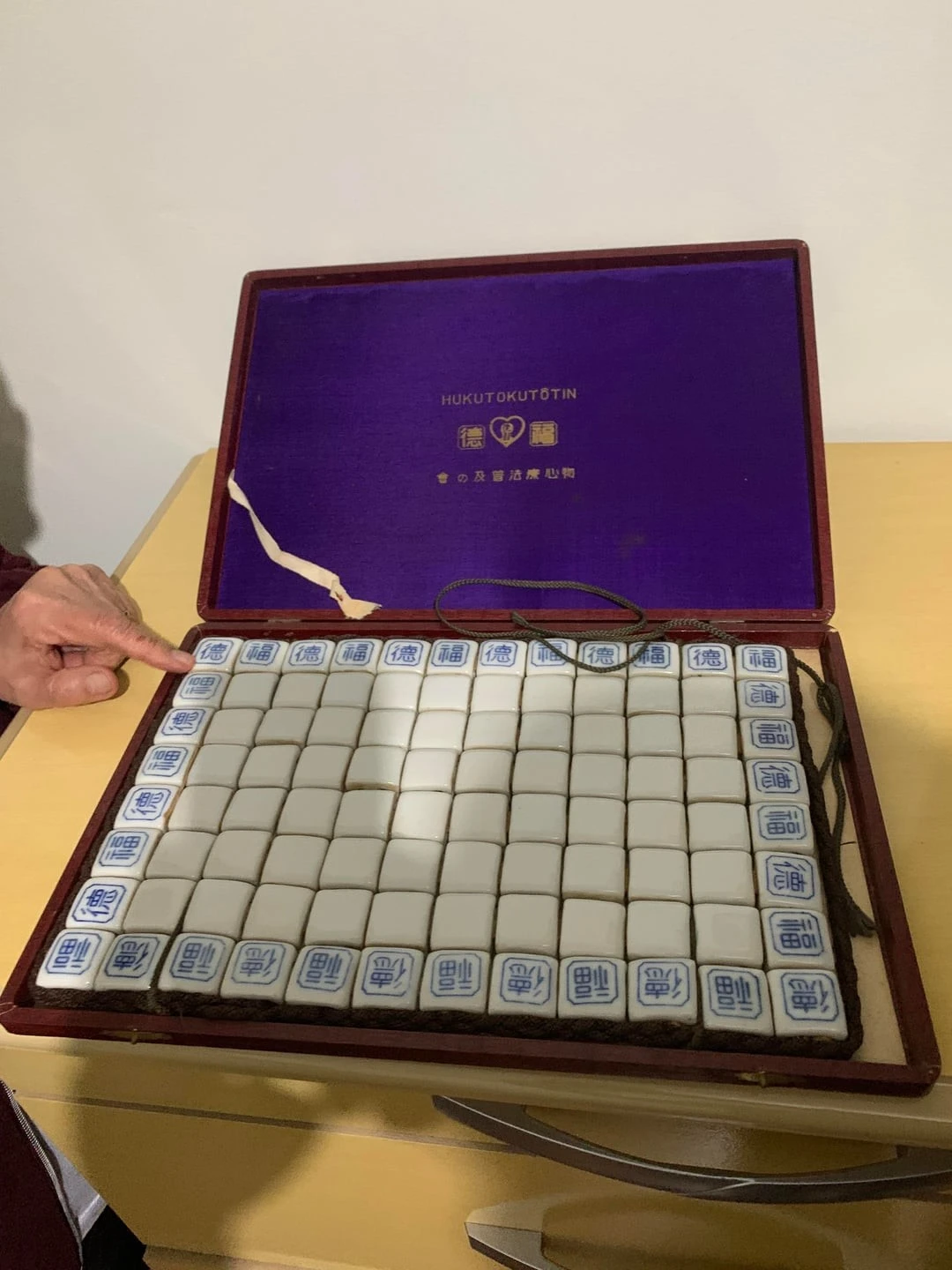 1. Ceramic cubes in a box, connected to each other to form a canvas, some of which are marked with hieroglyphs.