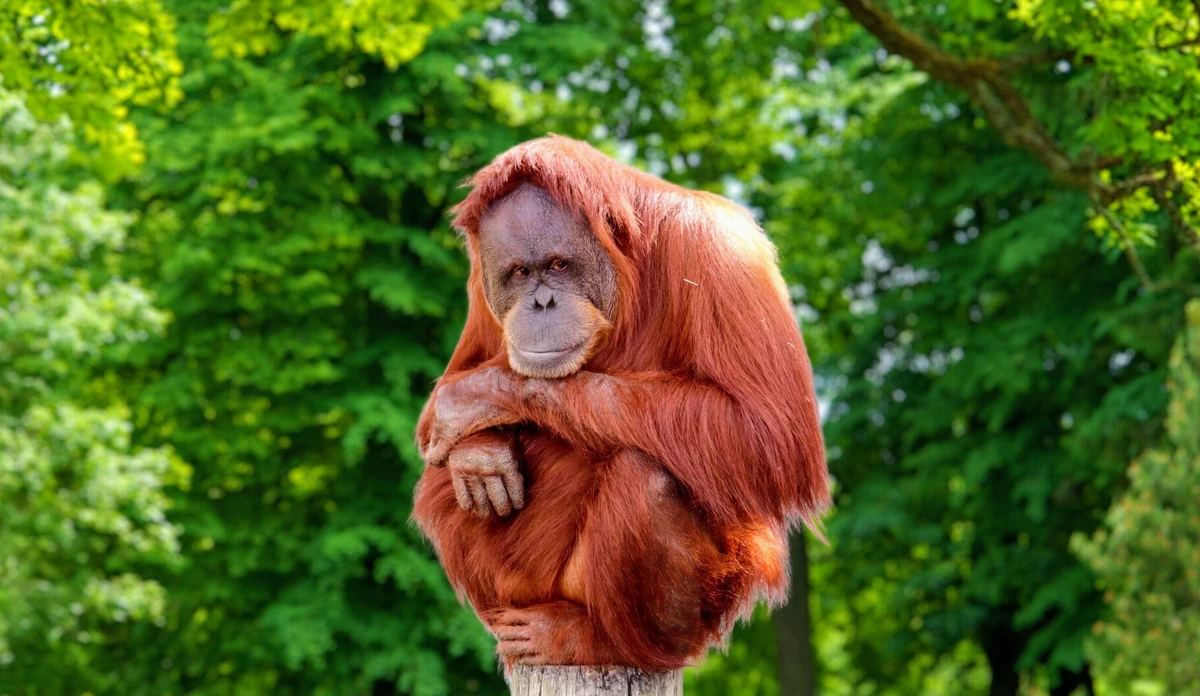 Orangutans are fairly large and extremely intelligent representatives of the great apes. They were once even considered forest people, deliberately not speaking and sitting in trees to avoid being forced to work. And this is not surprising, because these primates really are very similar to us.