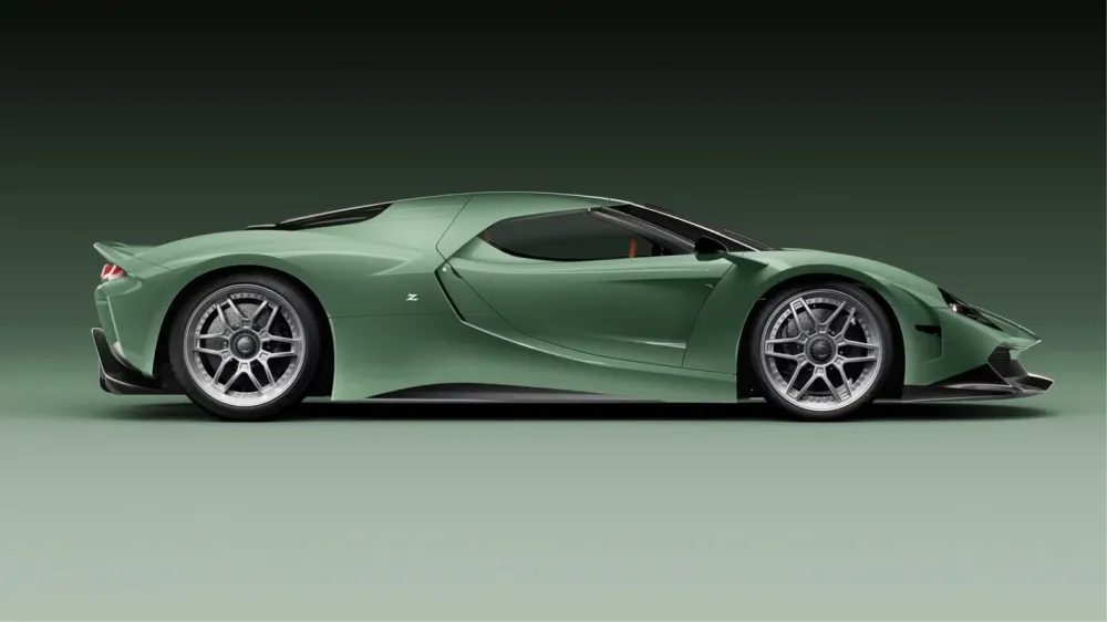 The new car is powered by a turbocharged 5.2-liter Ford V8 engine producing 900 hp and 1,127 Nm of torque and mated to a five-speed manual transmission from Cima, a supplier to Koenigsegg and Pagani. Performance figures are not available, but the supercar weighs 1,227 kilograms and has an estimated top speed of 350 km/h.