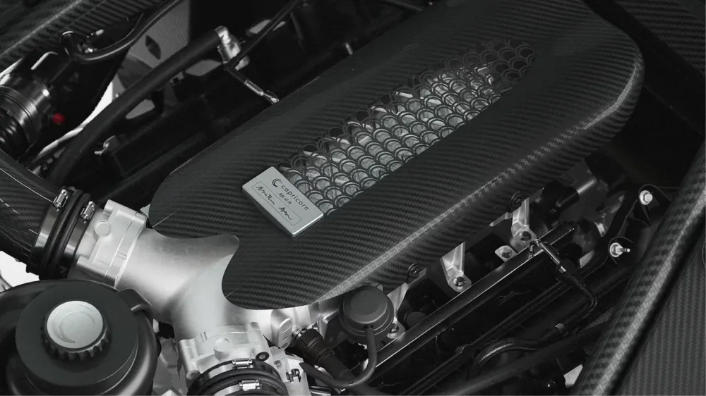 The Capricorn 01 Zagato is built on a carbon fiber monocoque and features a carbon fiber body. The double wishbone suspension is mounted on subframes. Bilstein components, Brembo brakes, and 21-inch wheels are available in alloy or carbon fiber.