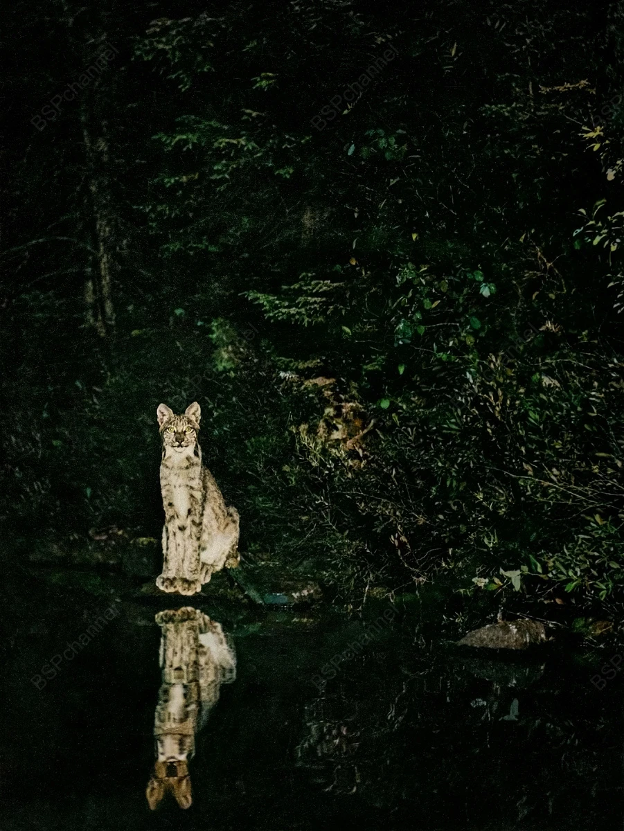 Lynx on the shore of a lake in Ontario, Canada, 1902.
