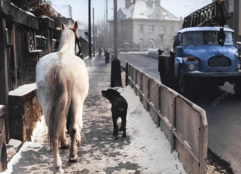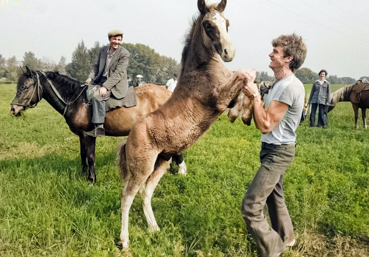 A Boston heavy draft horse foal at the state-owned Novoalexandrovsk stud farm. Ukrainian SSR, 1985.