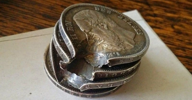 3. These coins were in a soldier's pocket during World War I and saved him from a bullet