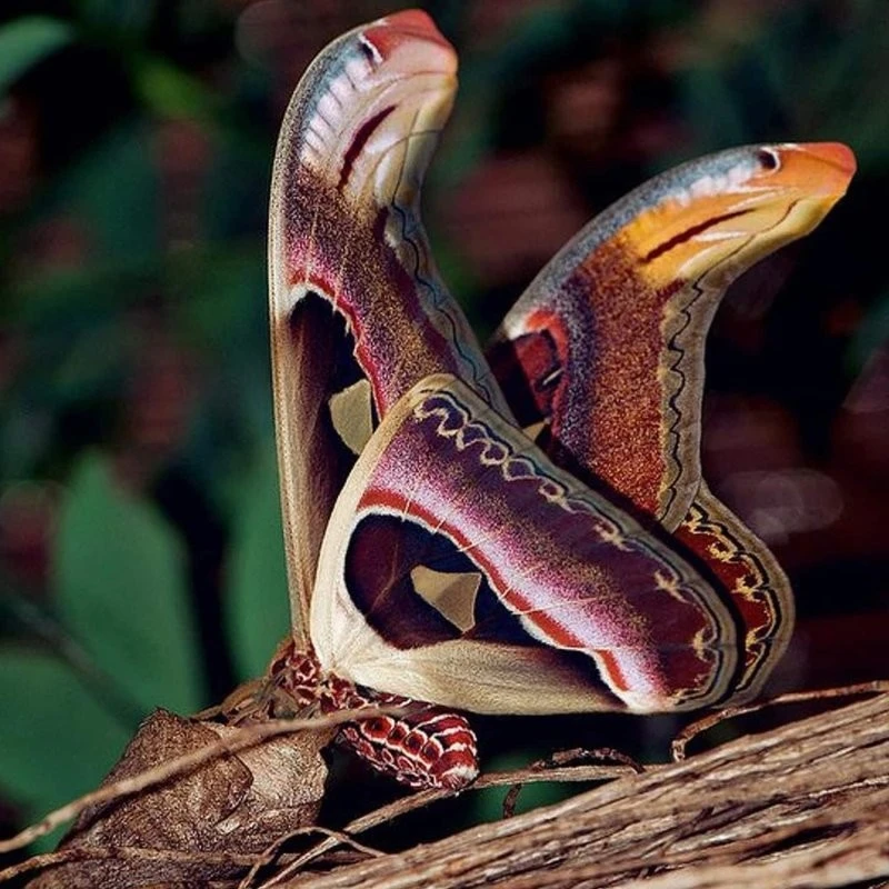 12. The Atlas moth - a butterfly with a wing pattern resembling a snake's head