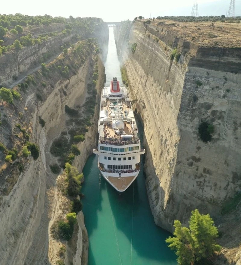 16. A huge cruise liner passes through the Corinthian Sea Canal, Greece