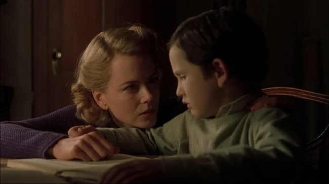 The film is presented as the story of a family haunted by ghosts. Everything is filmed from the perspective of the mother and children, and the viewer believes their fears. Only the ending reveals that they are the ghosts, and the living residents are the ones they frightened. The deception is built on a limited perspective: the viewer is shown only one version of reality.
