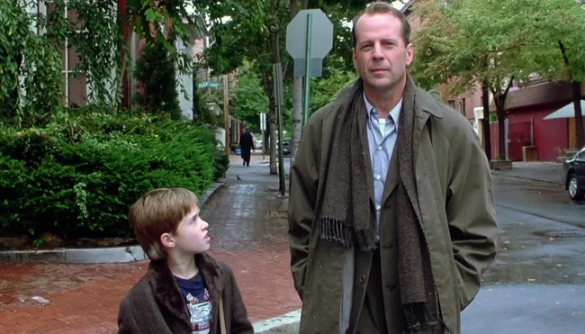 The entire narrative is constructed in such a way that Bruce Willis's character seems like a living person. The camera avoids sharp angles: he never directly interacts with anyone except the boy. The editing and scenes are structured in such a way that the viewer perceives him as a fully-fledged character. The final reveal—he's dead—works only because the director has been convincing the viewer otherwise the entire time.