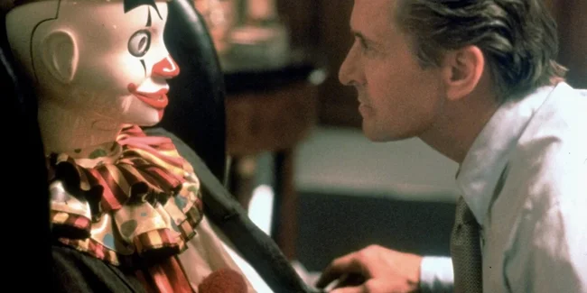 Michael Douglas's character finds himself trapped, where the line between reality and the game blurs. The viewer constantly thinks that the events are now real, but then it turns out they're part of a corporate script. Fincher deliberately alternates levels of truth and tricks the viewer: they share the character's sense of complete loss of control. The result is a shock when everything turns out to be a staged amusement ride.
