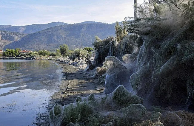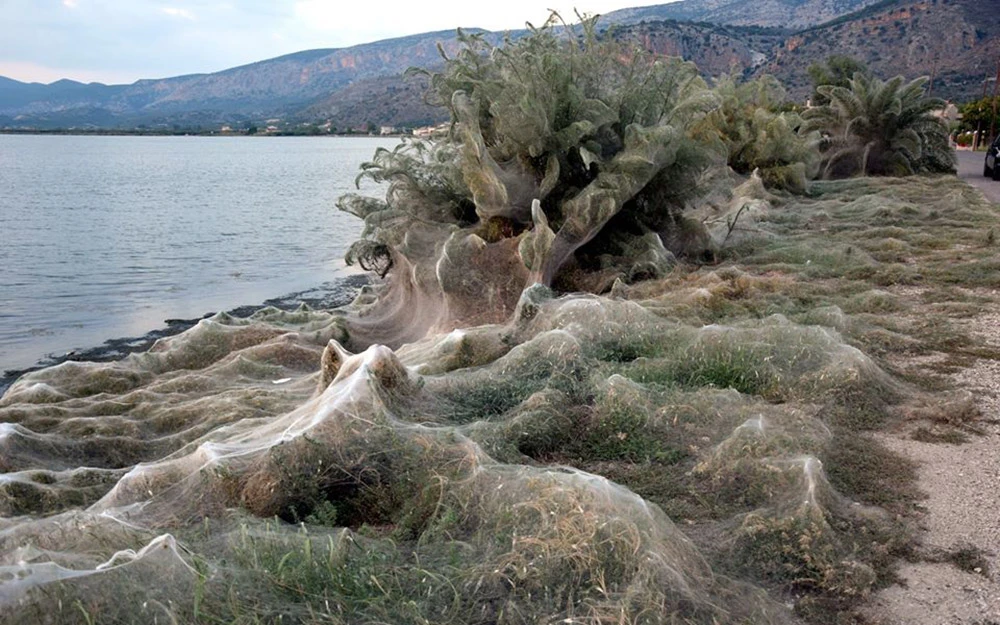 Every 3-5 years, arthropods seize control of Aitoliko and turn it into Spider Island. There are so many of them that the entire island is covered in webbing, as if it were trapped. Horrible! At least for us. The locals have long since gotten used to this kind of presence. They're not afraid at all; they calmly go out for walks and enjoy the sight of the city entangled in webs. How do they even survive there?!