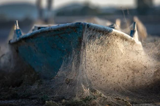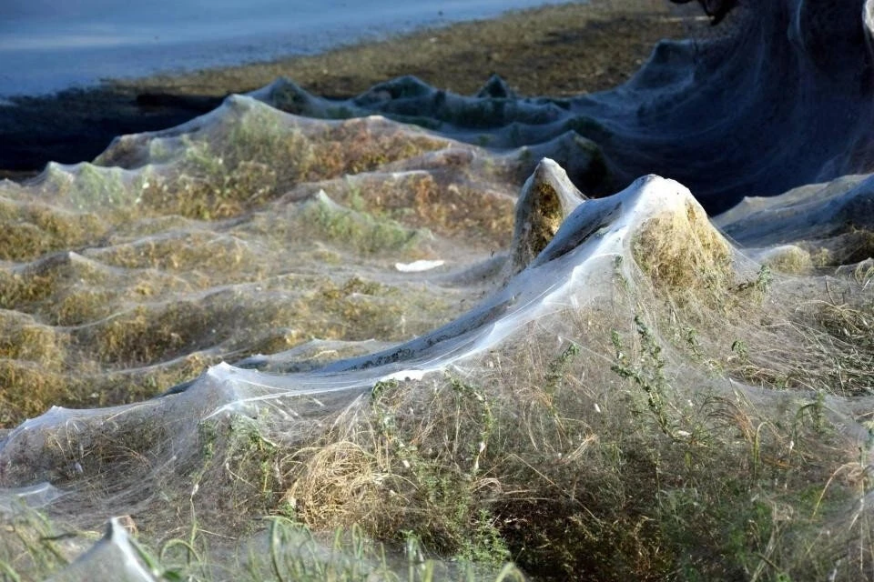 Plus, this season coincided with breeding season, so the spiders went wild. They spun tons of webs, tangling everything around them, ate, and mated. The young hatched there, and then spun their own webs. Because of this, hundreds of meters of the coastal area were densely tangled in webs, like the set of a horror movie.