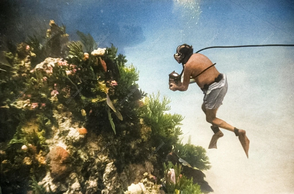 Photographer Fritz Goro on assignment near Bikini Atoll, taking photos for LIFE magazine, 1953.