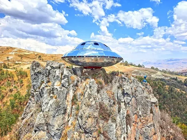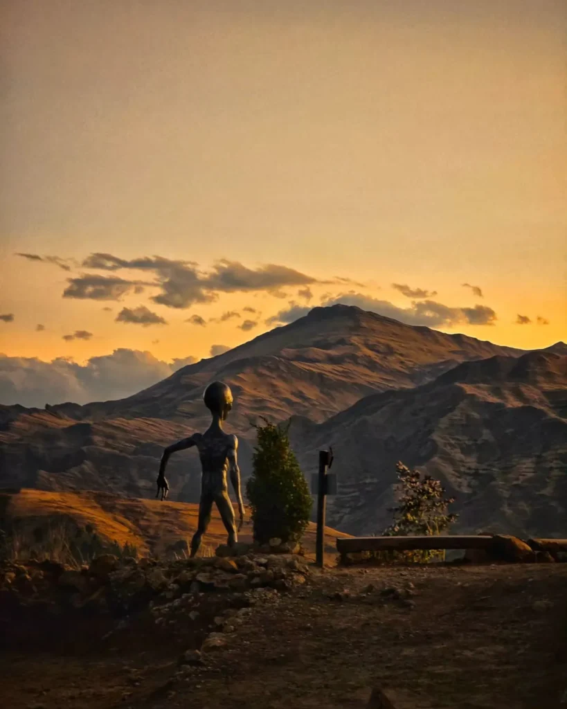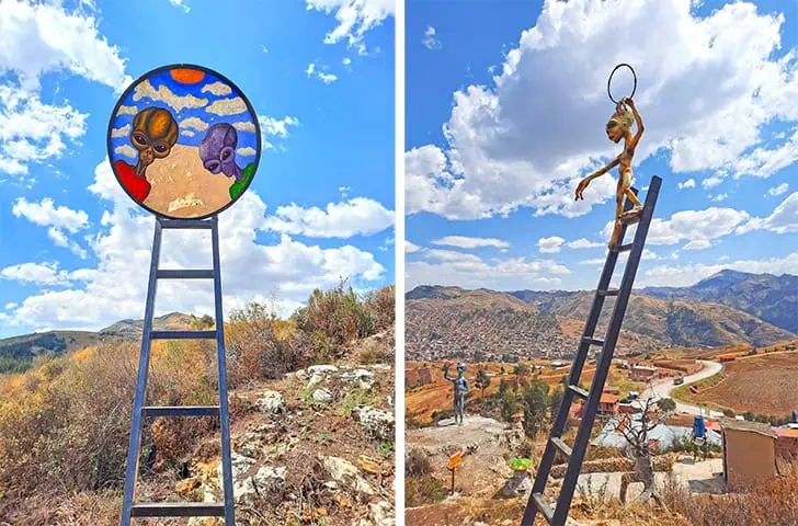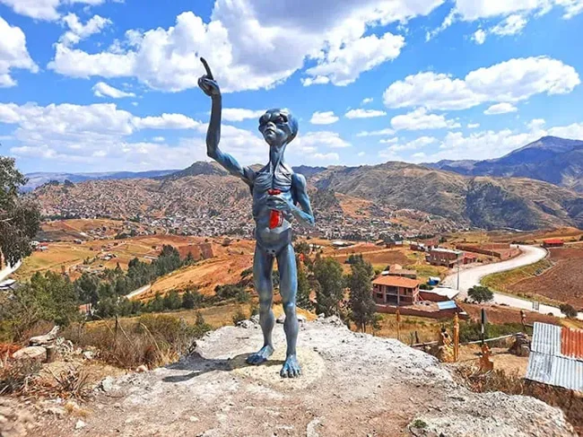 However, this is more than just a kitschy roadside attraction for content creation. An interactive art installation by artist Tupac Camari Candia skillfully blends Peruvian folklore and science fiction, revealing the local culture's deep connection to the cosmos.