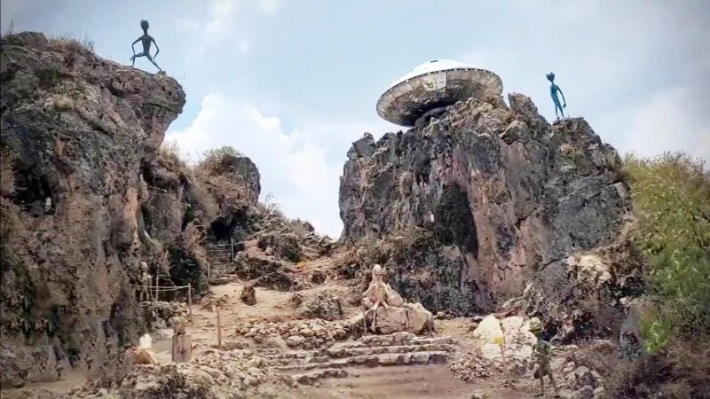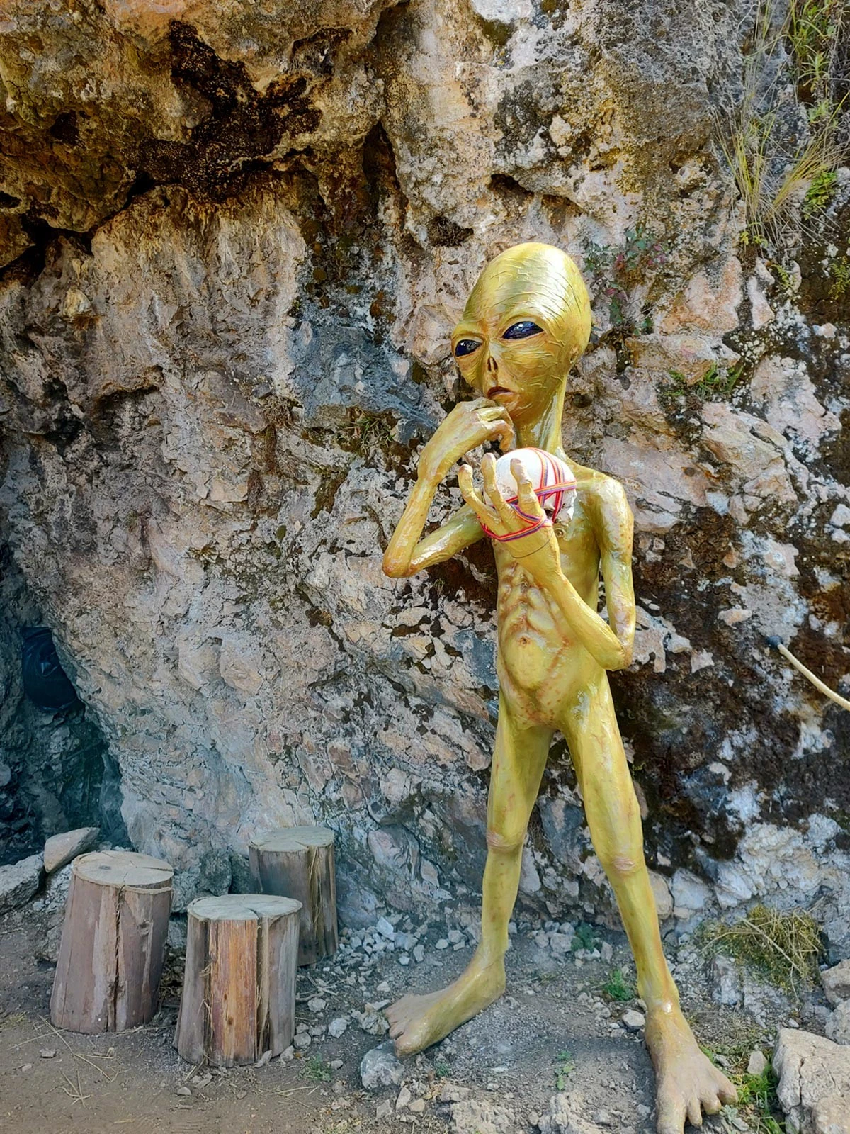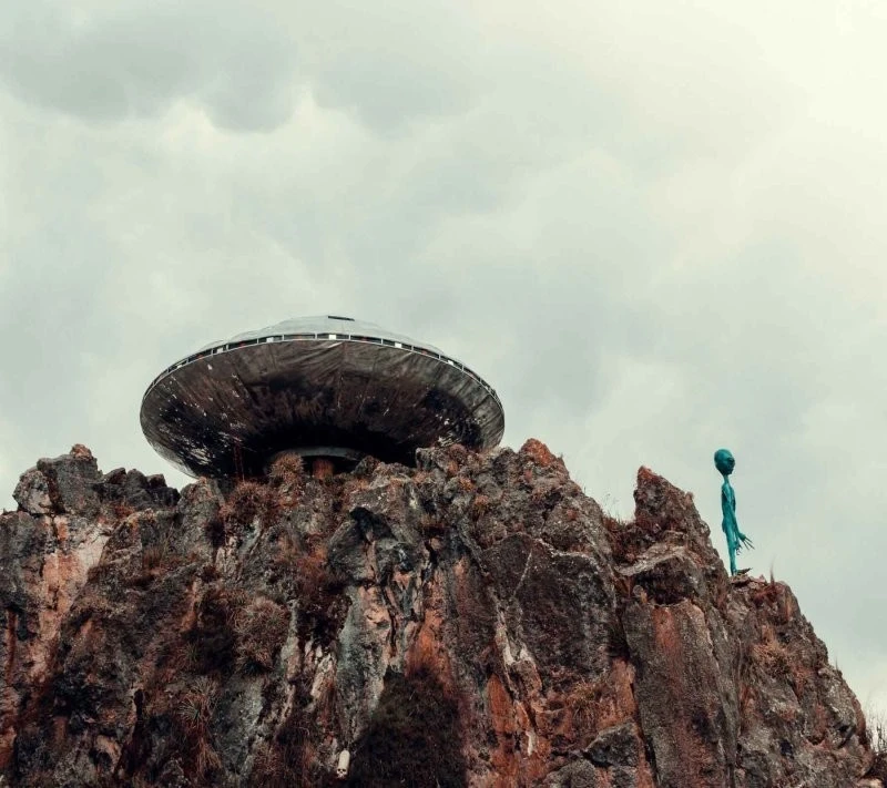 Hinting at the imminent visit of guests from other worlds, tourists are greeted by signs provocatively reading "Free Abduction" and an impressive UFO sculpture.