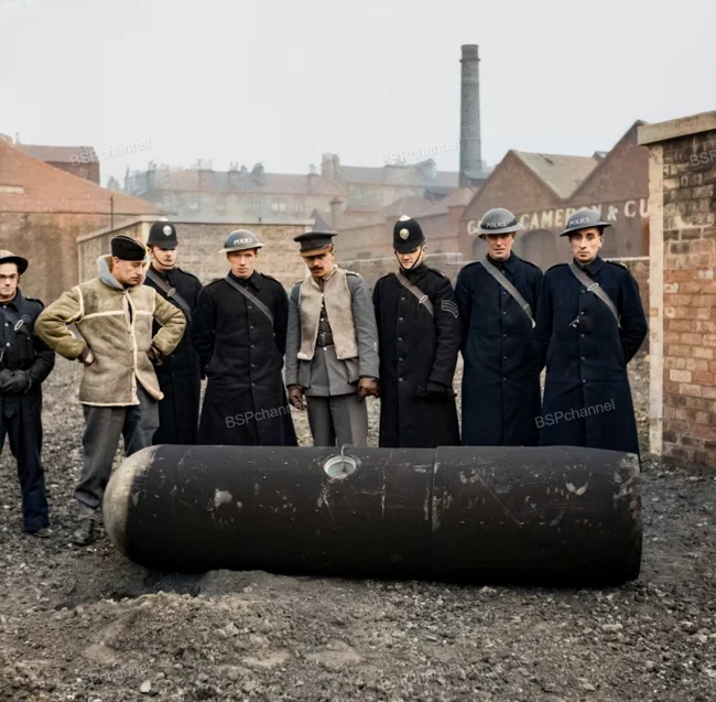 A defused 1,000-kilogram Luftmine (German parachute mine), Glasgow, 1941.