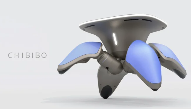 There are no production dates; testing with real children is still being decided by local authorities. In Japan, they're already considering legislation for such "children's pods." Next to Mobi at the show was Chibibo, a four-legged backpack-carrying robot that can climb stairs.