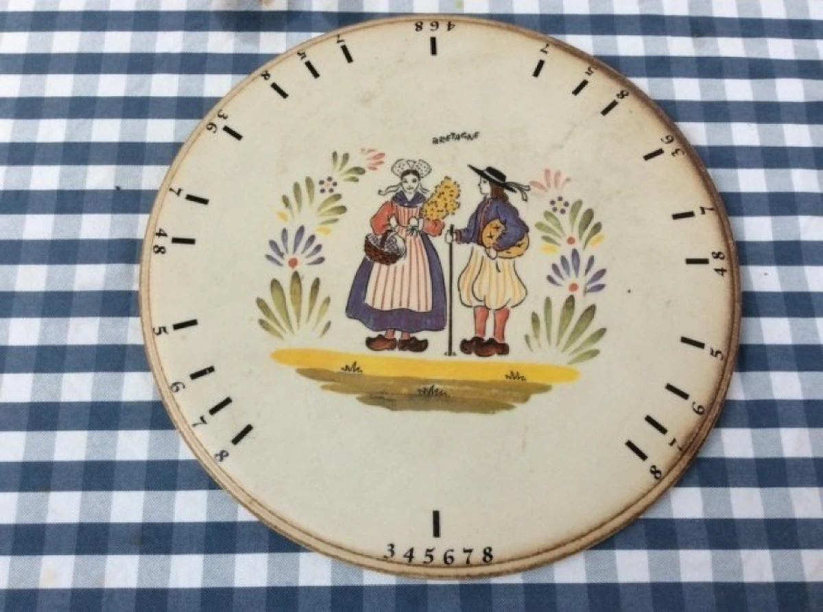 Plate for cutting pie into equal pieces (3 to 8 slices).