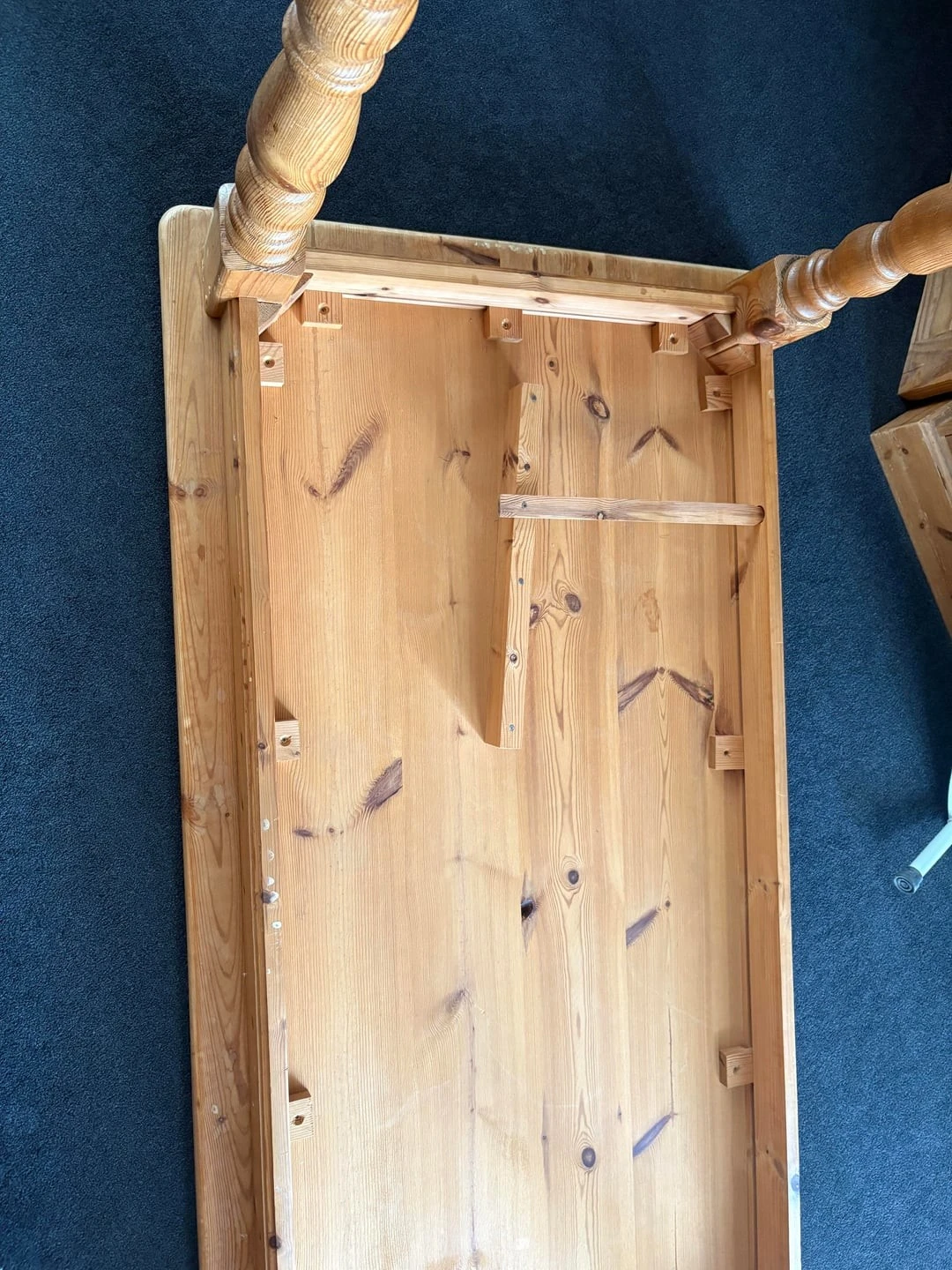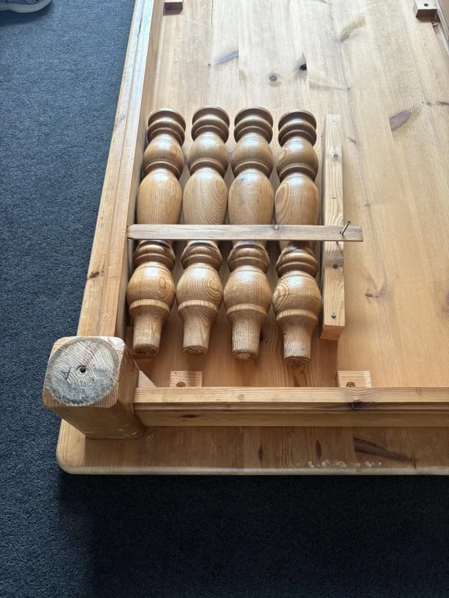 9. What is the purpose of the piece of wood nailed to the bottom of the tabletop of an old pine table?