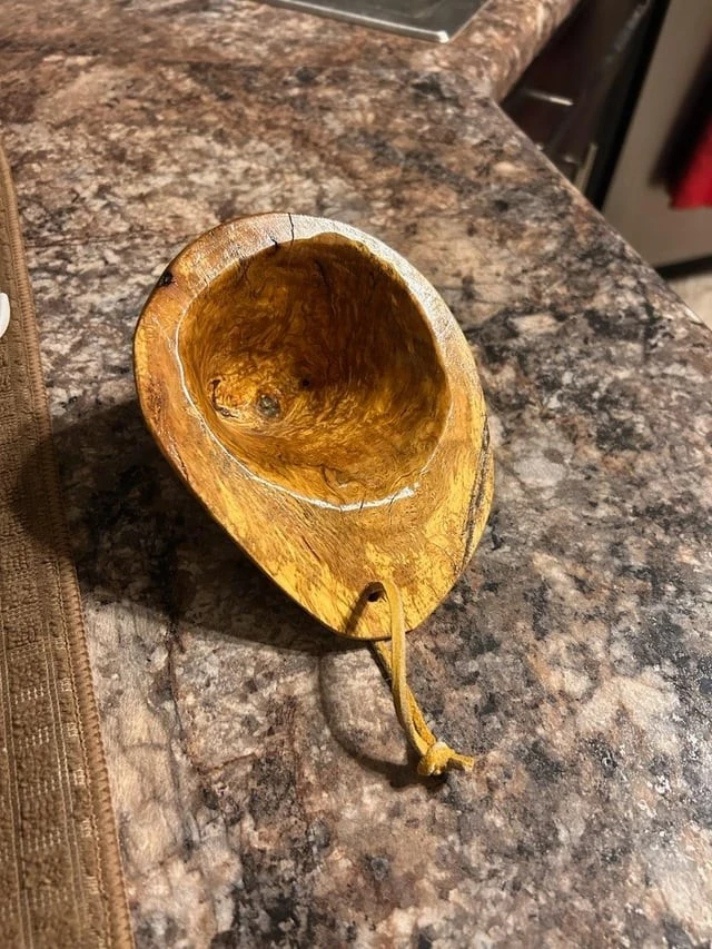 A kuksa is a traditional Sami wooden mug for drinks and liquid food. It is popular among hikers and outdoor enthusiasts due to its lightness and practicality. It is also considered a symbol of connection to one's roots and brings good luck.