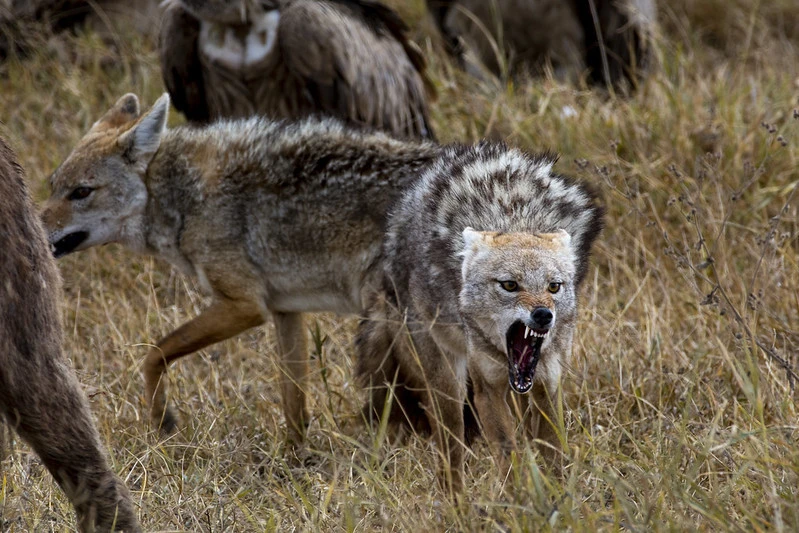 This pest also avoids people. Jackals are bolder, especially black-backed jackals. And you'll never find this bastard again! For a year and a half, I fed the bloodsuckers in various national parks, hoping for a chance encounter. All I got was a trail of tracks on the shore of Lake Natron! Only in May of this year did I manage to spot a wolf for the first time at the edge of a lake in Ngorongoro from afar. Of course, it didn't let me take a photo of it. But it did reveal its location. On my next visit, in June, the wolves exploded. Eight individuals in a couple of days, all quite close. One even approached the car. I managed to watch the wolf browsing in the grass. Tourists, naturally, didn't share my enthusiasm and drove past in search of the "Big Five."
