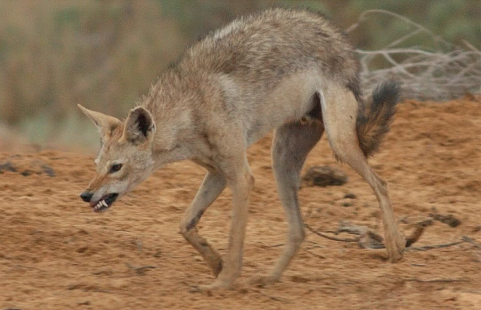 This animal lives in North and East Africa. Life in the harsh wastelands hasn't been kind to it—it doesn't even look like a formidable predator. Males weigh about 15 kg, females about 10.
