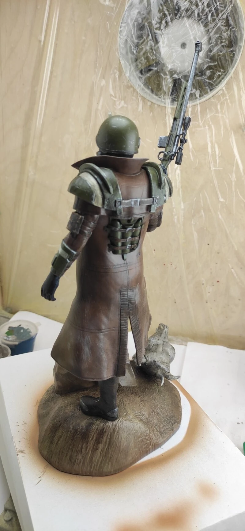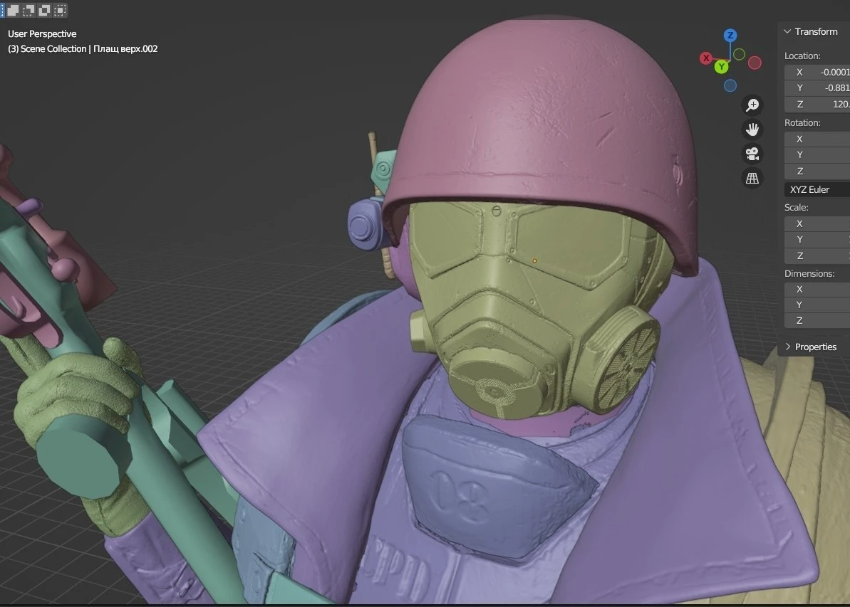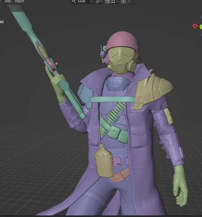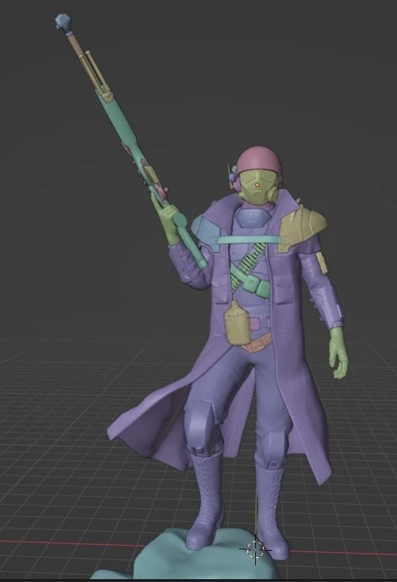 Next, I grabbed the model from the game files and loaded it into Blender. I took the weapon from Fallout 4. I tweaked it a bit, twisted it, and increased the detail. I also fiddled with the pose; I really wanted a flowing cape.