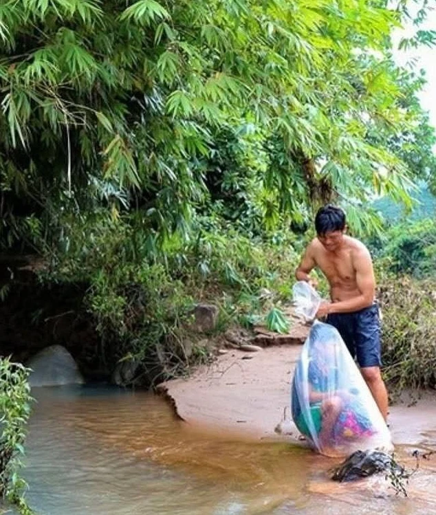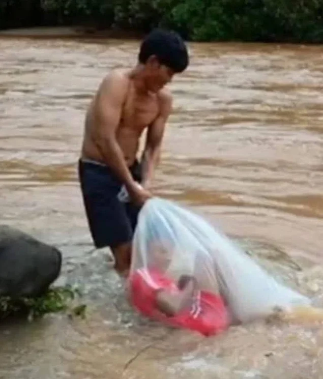 The rainy season in the Vietnamese village of Huoi Ha cuts it off from the rest of the world, so parents have come up with a life hack to encourage their children to study: stuff them in a bag and, with the help of local men, drag them across a raging river.