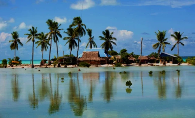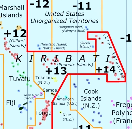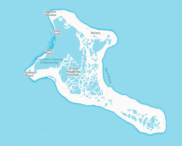 Kiribati is an island nation. In the 18th century, explorers lacked the patience to name the small islands, so they remained so. Poland, Paris, London, and Banana are cities on Christmas Island. Kiribati, in fact, consists of 33 islands spread over 5,000 kilometers in the middle of the ocean, and thus for a long time straddled four hemispheres. To avoid confusion, in 1995 the International Date Line was bent to encompass all the islands.
