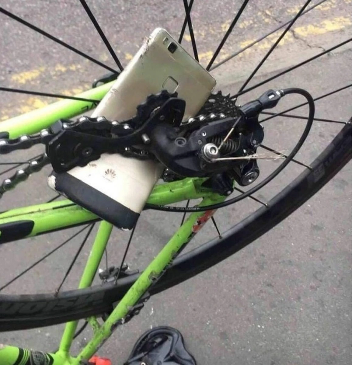 It's best not to use a cell phone while riding a bike, otherwise something like this will happen.