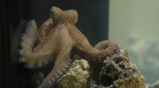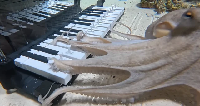 First, the experimenter gained the octopus's trust by giving it food. Within a week, the first key appeared in the aquarium. Using rewards, the octopus learned to play three notes. It refused to play any more.