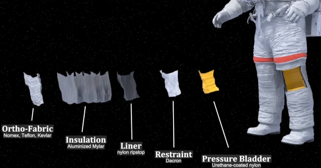 The hermetic, human-shaped shell is made of multiple layers: a pressure shell, a load-bearing structure, a lining, several layers of insulation, and an outer shell.