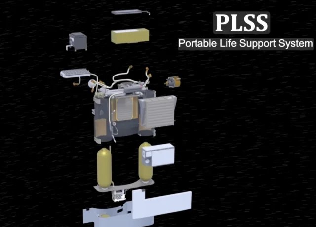 The PLSS (portable life support system) backpack is not replaceable, unlike the shell, and costs $150 million. Only 18 of these backpacks have been produced. It contains several batteries, primary and emergency oxygen tanks, carbon dioxide removal canisters, and water tanks. A fan and pump circulate water throughout the suit, and a radio is also included for communication.