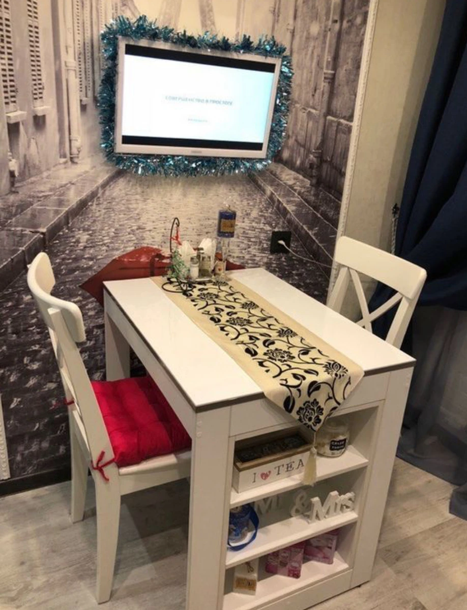 The photo wallpaper not only decorated the interior, but also visually enlarged the room.