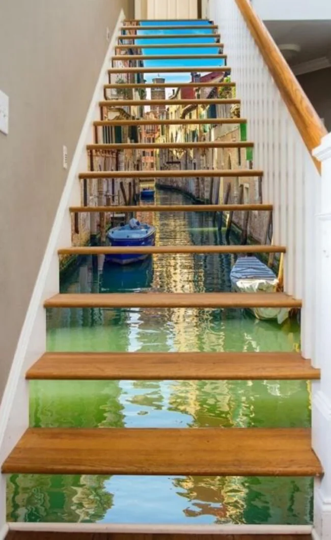 The Venetian staircase is complemented by a matching landscape.